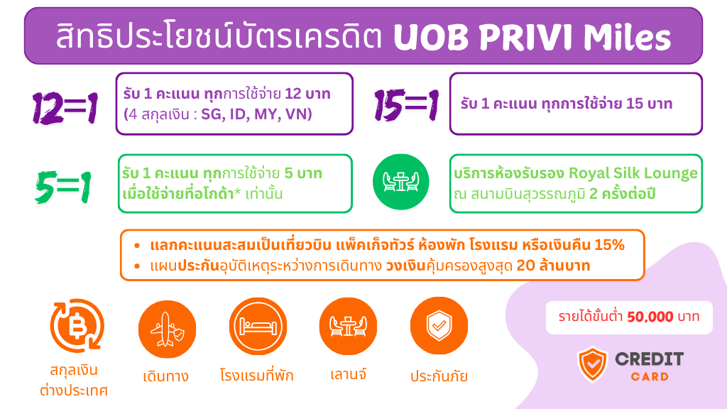 - ชื่อบัตร (ภาษาอังกฤษ): UOB PRIVI Miles Credit Card
